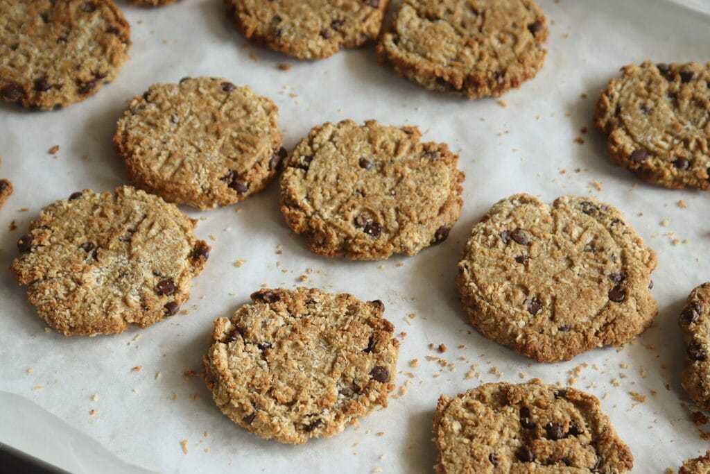 Et les voilà prêts, mes biscuits aux pépites de chocolat, également sans gluten en plus d’être végétaliens.
