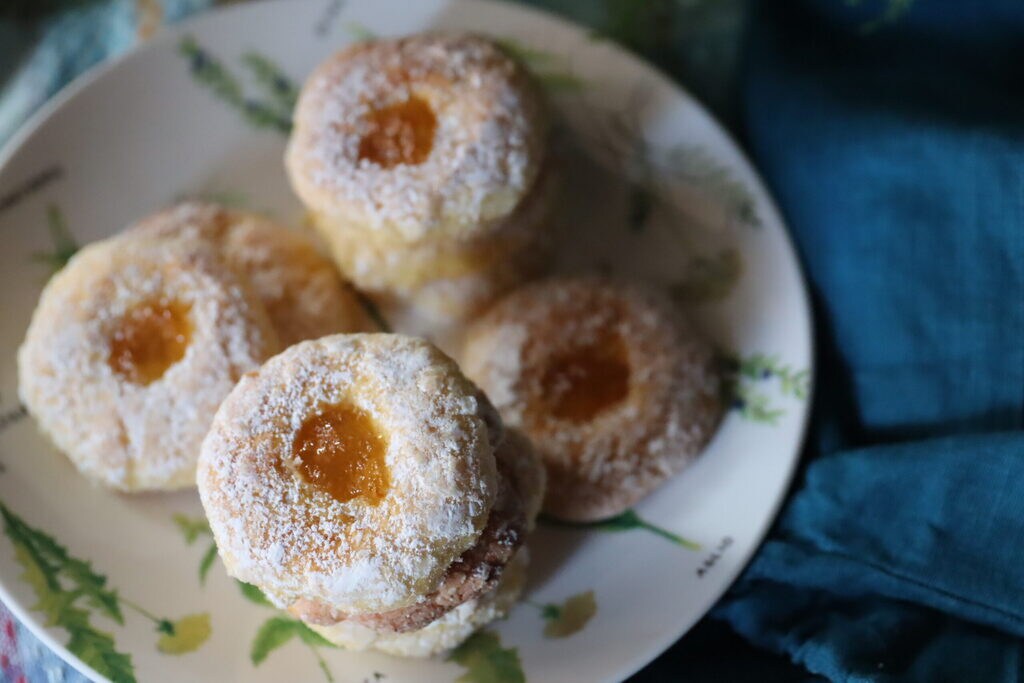 Chaque fois que je prépare un dessert, je râpe toujours le zeste du citron dans le sucre, ainsi il s’aromatise avec les huiles essentielles. Dans le bol en verre, je mets le beurre (que j’ai fait fondre pendant 30 secondes au micro-ondes) avec le sucre et je mélange les deux ingrédients avec le fouet, j’ajoute le jus de citron et l’œuf en mélangeant toujours le tout avec le fouet. Je tamise la farine avec la levure et je l’ajoute à la pâte toujours en battant. Dès que j’ai fini, j’ai mis le bol avec la pâte au réfrigérateur pendant une demi-heure couvert de film alimentaire. Passé ce temps, versez sur une petite assiette le sucre glace et avec une cuillère, prélevez une petite part de pâte et formez une boule, et repassez-la plusieurs fois dans le sucre glace. Disposez ainsi toutes les boules sur la plaque ou le tapis en silicone de cuisson, faites un trou avec le doigt et remplissez-le de confiture de citrons.