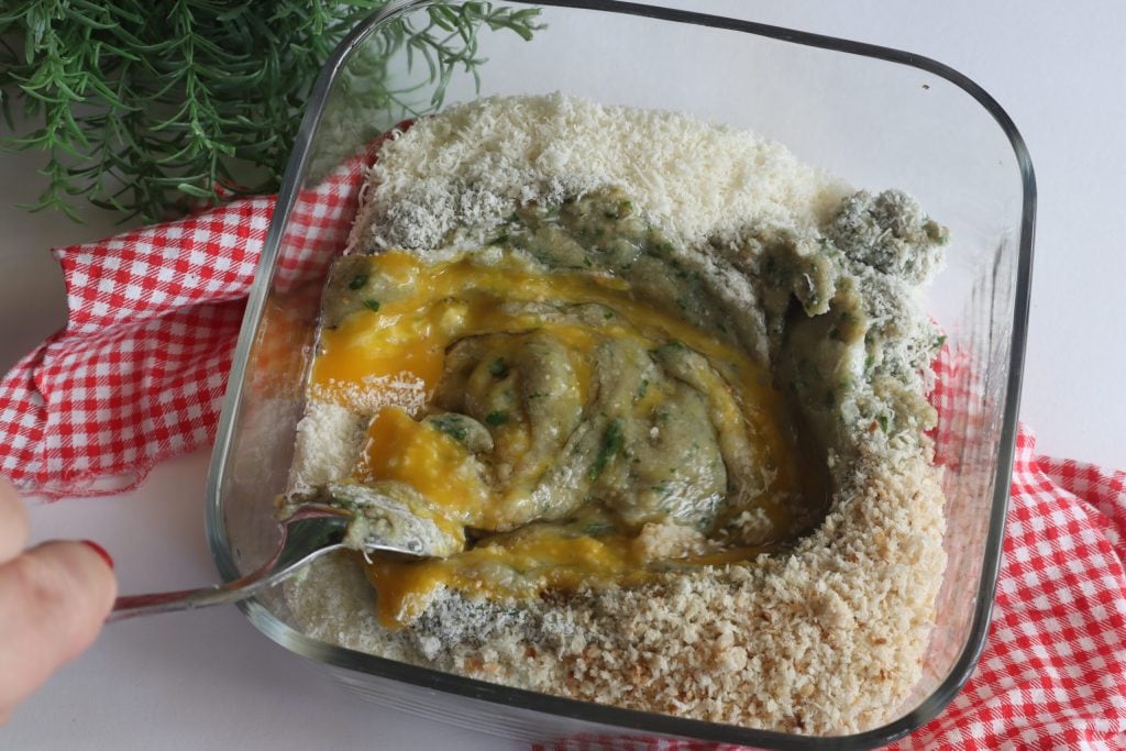 Mélangez et, si vous vous rendez compte qu’il est encore trop mou, ajoutez de la chapelure.