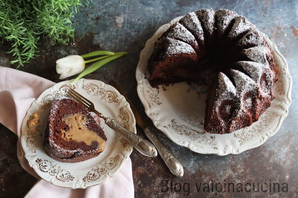 Bundt cake au chocolat avec du café et un cœur de fromage frais et moelleux comme le mascarpone, une façon insolite de préparer ce gâteau, traduit exactement par bundt cake. L’origine et l’histoire du Bundt cake remontent aux années 50, lorsque un ingénieur de la Marine américaine inventa ce moule en aluminium pour une compétition de gâteaux en Californie. Ce fut un immense succès et aujourd’hui, il n’y a pas de famille américaine qui n’ait pas ce moule à la maison pour réaliser des gâteaux visuellement magnifiques en plus d’être délicieux. Grâce au trou central qui répartit efficacement la chaleur dans toute la pâte, permettant une cuisson parfaite, c’est la clé du succès.