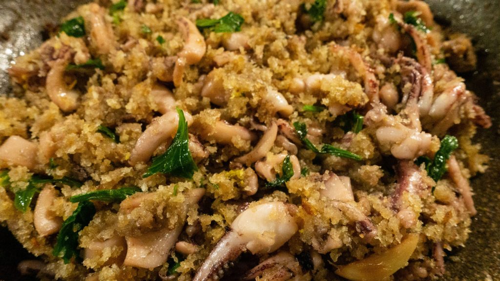• Arrosez les tentacules de calamar avec le vin et laissez cuire encore dix minutes.