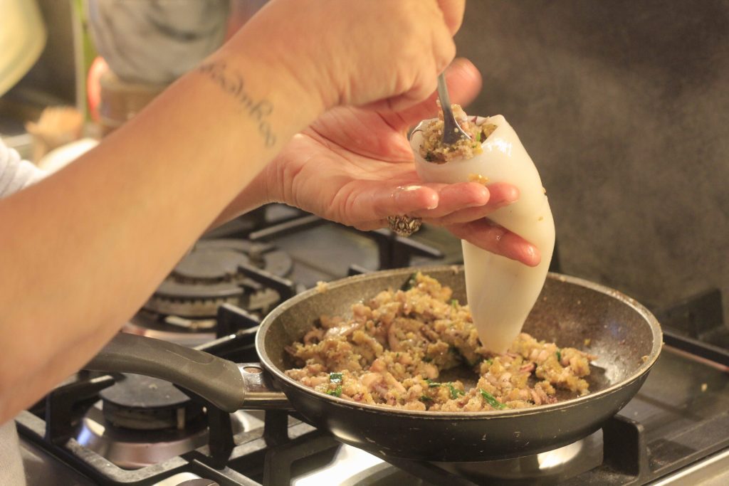Calamars farcis à la tomate. Le poisson est un aliment toujours très apprécié, qu’il vienne de la mer, de la rivière ou du lac. Sûrement pour ses propriétés nutritives, le poisson est pauvre en graisses et contient de nombreuses vitamines, celui de mer est également riche en iode. En tant que Sicilienne, le poisson ne manque jamais sur ma table plus que toute autre chose, étant née dans un village au bord de la mer, c’était une habitude de cuisiner les produits locaux comme le poisson vendu par les pêcheurs du coin ou les légumes cultivés à zéro kilomètre par mon père.