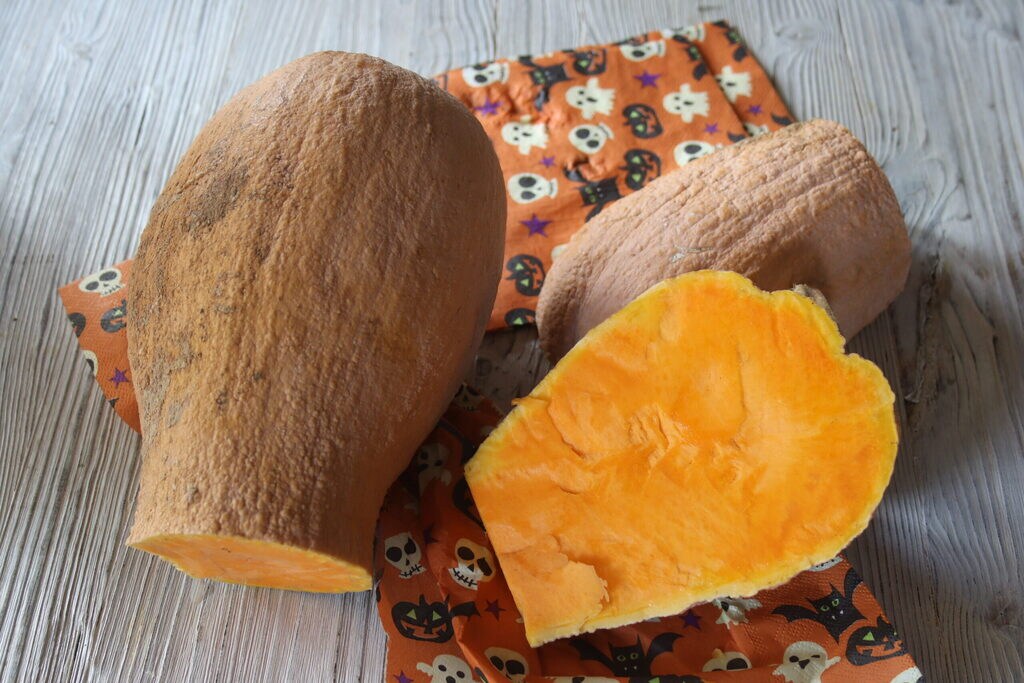 Pour cette préparation, j’ai utilisé la courge violina, une variété raffinée et savoureuse de la famille Cucurbita moschata. Il existe de nombreuses variétés de courges, et pour simplifier, elles ont été regroupées en 4 espèces, chacune contenant plusieurs variétés. Les courges d’hiver, comme la courge Mantovana, la piacentina ou la marina di Chioggia, font partie des Cucurbita maxima. Celle que nous utilisons pour sculpter, pour Halloween par exemple, fait partie du groupe Cucurbita pepo et s’appelle Jack-o’-lantern, elle est également très utilisée pour les préparations sucrées et salées en cuisine.