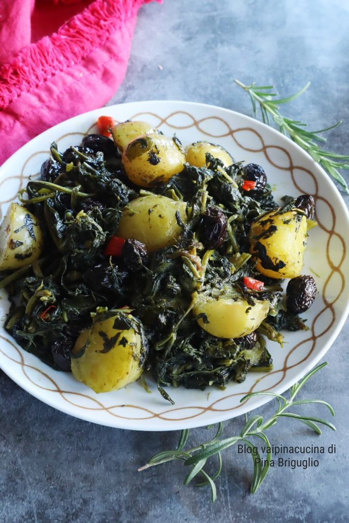 Chou avec pommes de terre et olives : un accompagnement simple mais vraiment bon, préparé principalement avec des produits de saison. J’ai trouvé au marché de quartier cette variété que dans le Sud ils appellent aussi soupe mariée. Elle fait toujours partie de la famille des choux, qui en réalité comprend plus de 300 variétés différentes, tout comme le chou-rave des Pouilles. C’est le moment du chou sous toutes ses formes et, donc, profitons-en pour le consommer de différentes manières.