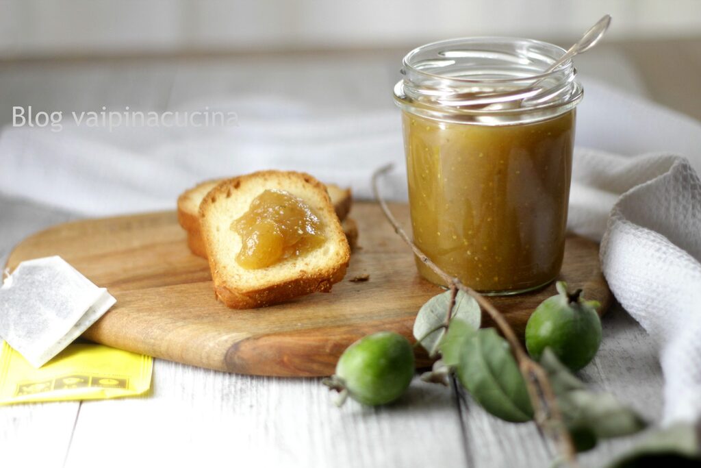 Confiture de feijoa bonne et simple, mais avant de vous parler des bienfaits de cette extraordinaire confiture, je voudrais vous dire deux petites choses que j’ai trouvées en ligne en me documentant. Le feijoa est un arbuste à feuilles persistantes de la famille des Myrtacées. Originaire du Brésil, de l’Argentine et de certaines régions de la Colombie. Bien qu’elle soit une plante d’origine semi-tropicale, elle supporte aussi des températures basses jusqu’à -12