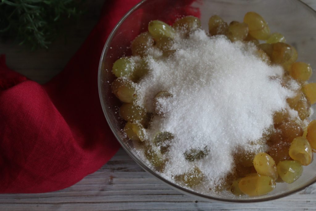 • Évidemment, quand je dis 750 grammes de raisin blanc, je parle du poids net, sans pépins.
