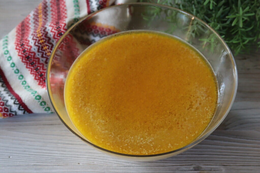 et versez dessus l’eau chaude dans laquelle vous avez fait dissoudre le safran.