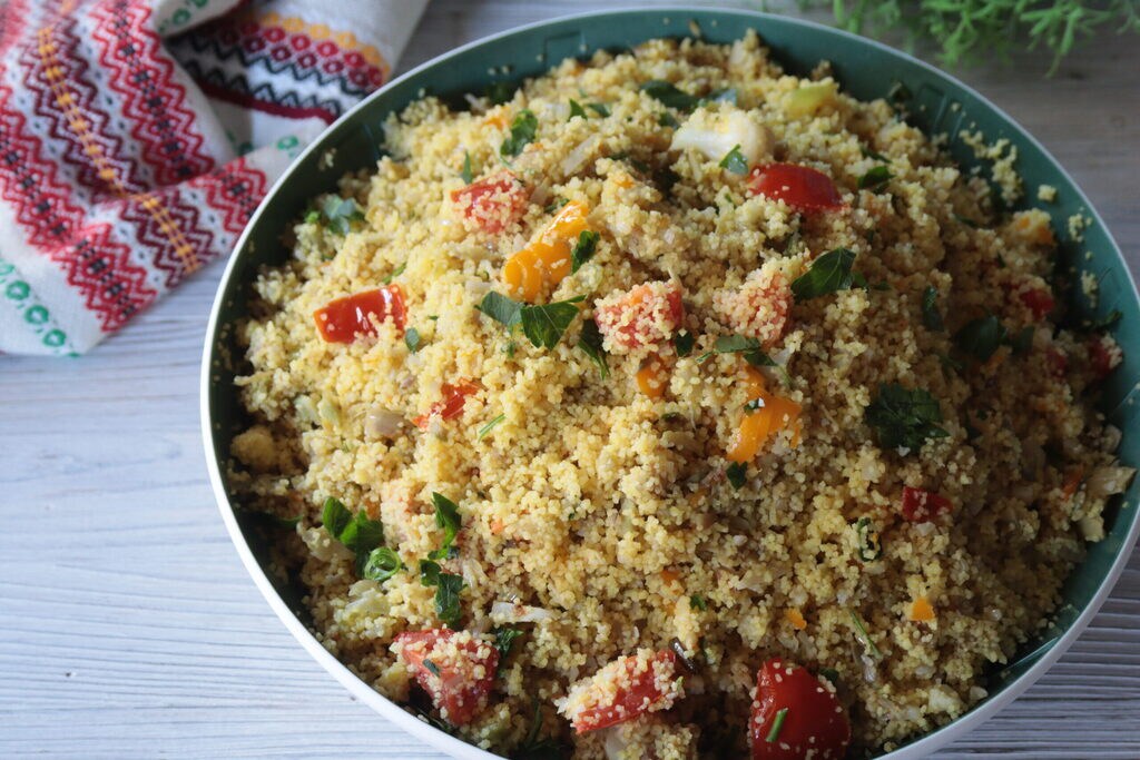 Ici, évidemment, zéro gaspillage, en fait, c’est un excellent plat pour utiliser des légumes et des légumes à votre guise. Il n’est pas nécessaire d’acheter exprès mais d’utiliser ce qui reste des préparations précédentes. Vous pouvez enrichir votre couscous avec des pignons ou des noix finement hachées.