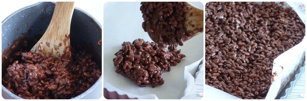 Coupez en carrés le croquant de riz soufflé prêt !