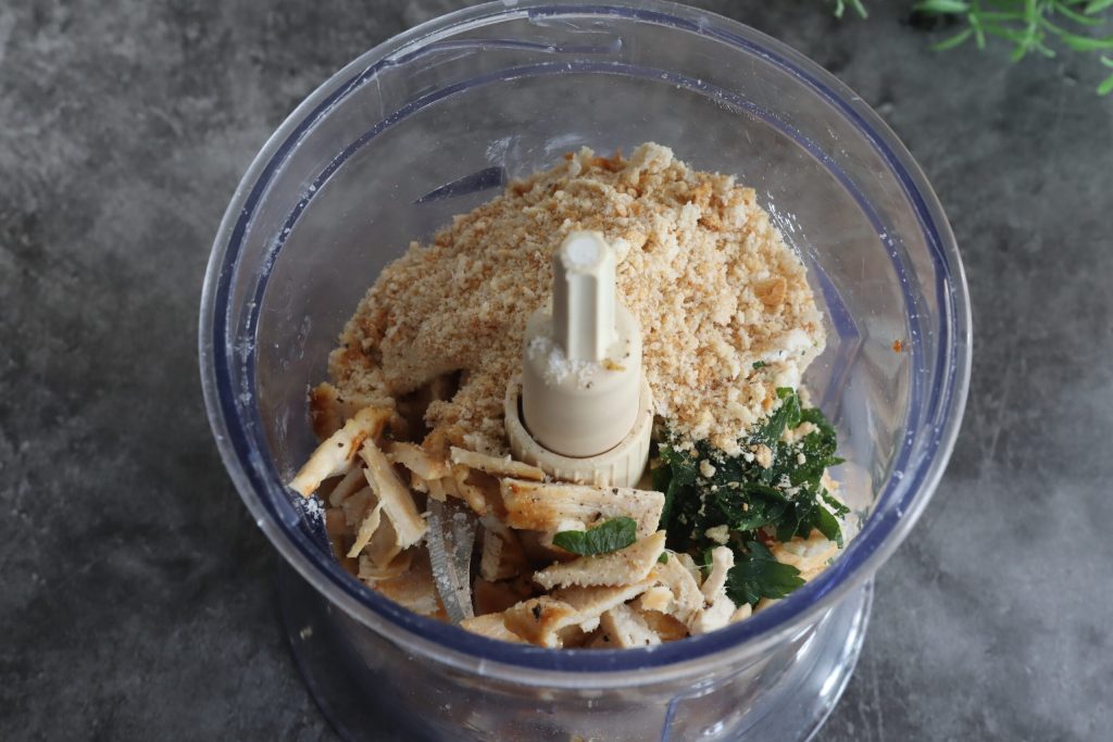 J’ai haché le blanc de poulet avec le persil et la mie de pain râpée.