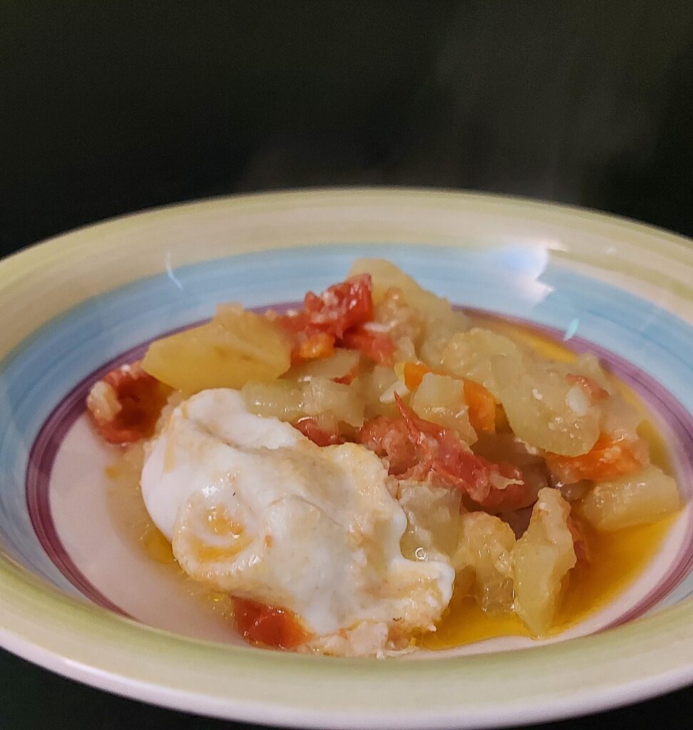 Cucuzza longue pommes de terre et œufs. Une amie me racontait que la première fois qu’elle a cuisiné la courgette longue, elle l’a fait avec toute la peau et naturellement, le résultat a été un peu un désastre… puis elle a appris. Cette courgette typique sicilienne est cultivée en été mais se trouve aussi en automne avancé. C’est une plante très particulière car elle grimpe et les courgettes pendent littéralement d’en haut, c’est un spectacle de les voir. Quand je la cuisine, j’en fais en abondance et je la mets en portions au congélateur pour la déguster en hiver simplement ainsi avec du parmesan dessus ou en ajoutant des pâtes ou comme aujourd’hui avec des œufs. Un plat simple, rapide et surtout délicieux qui plaît à toute la famille. Vous connaissez déjà ma recette cucuzza longue ou serpent, ici je mets le lien en bleu. La cucuzza longue autrefois se trouvait seulement dans le sud de l’Italie, aujourd’hui heureusement moi aussi je la trouve chez mon marchand de légumes, je l’aime vraiment beaucoup et pendant la période de production, j’en consomme beaucoup. J’en prépare toujours quelques bocaux sous huile pour l’hiver.