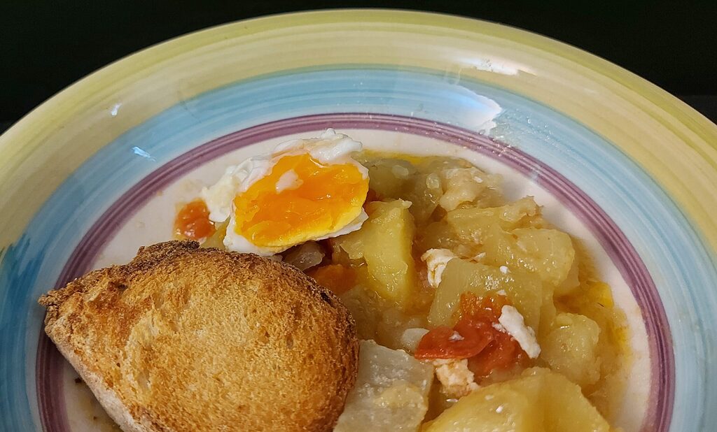 Grillez les tranches de pain et accompagnez la cucuzza longue pommes de terre et œufs.