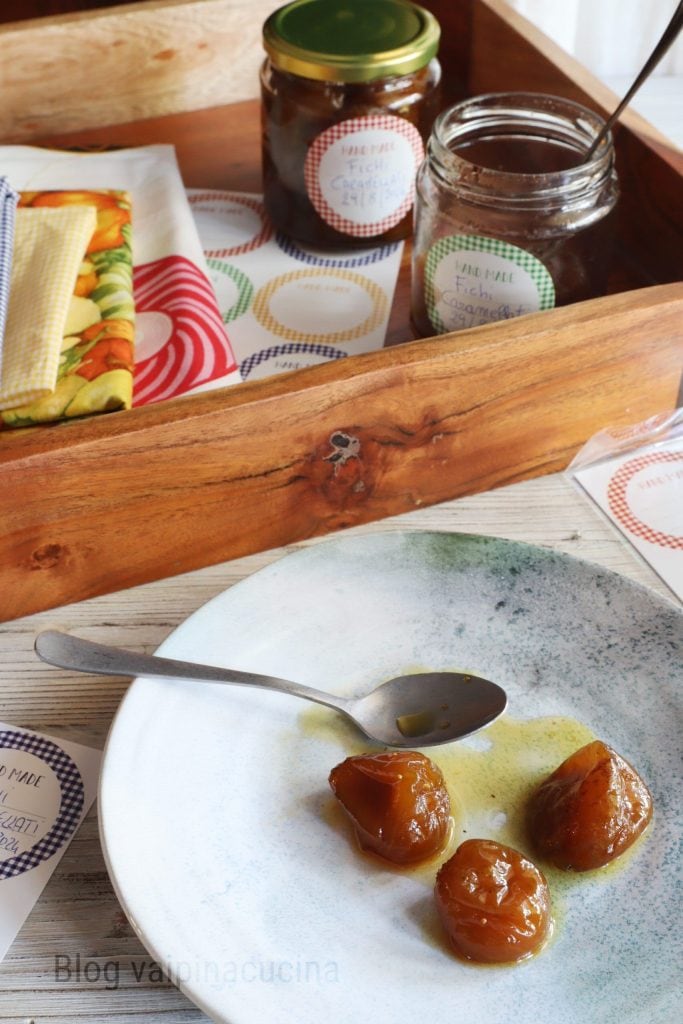 Figues caramélisées : une délicatesse à préparer tout de suite et à conserver pour l’hiver. Ceux qui pensent que les figues ne se trouvent qu’en été ont tort ; aujourd’hui, on peut les trouver toute l’année : en hiver, elles sont importées d’Amérique du Sud. Les meilleures ont une peau délicate et fine, sont grosses, juteuses et moelleuses. Les figues, qu’elles soient blanches ou noires, contiennent du fer, du calcium et sont une bonne source de minéraux riches en potassium. Cependant, si nous voulons consommer celles de notre pays et de saison, il faut évidemment se dépêcher : la période de récolte est très courte. Août et septembre sont les mois de plus grande abondance, mais on peut aussi en trouver en juin et juillet, les fioroni, ainsi appelés car ils mûrissent à partir des bourgeons de l’année précédente. En réalité, les figues ne sont pas un fruit mais une inflorescence de l’arbre ou, mieux dit, une fleur inversée. Après septembre, on peut trouver les tardives.