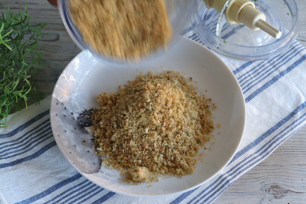 Versez dans une assiette la chapelure ainsi assaisonnée et