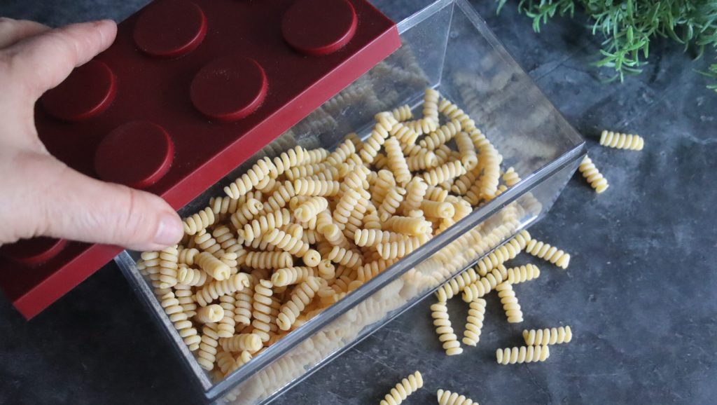 Dès que l’eau bout, j’ajoute le sel et mets les fusilli en cuisson.