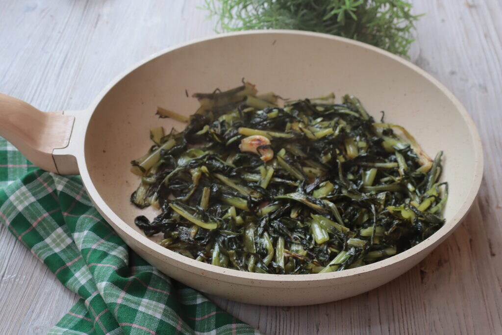Dans une poêle, faites dorer une gousse d’ail avec deux cuillères à soupe d’huile d’olive extra vierge. Couvrez et laissez cuire pendant 20 minutes en les retournant de temps en temps.