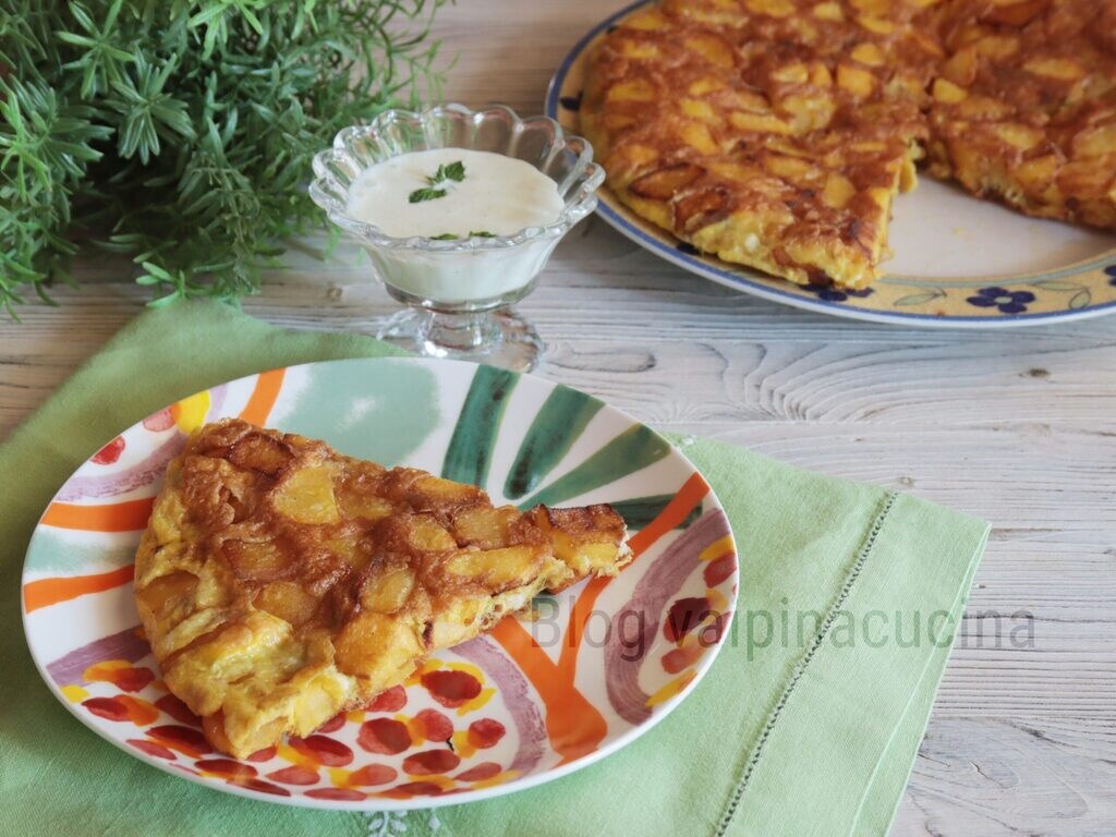 Omelette de pommes de terre simplement sans rien ajouter, pas de poivre, pas d’herbes mais seulement des œufs et des pommes de terre dans leur simplicité et leur bonté. Un des légumes que l’on consomme toujours cuit est certainement la pomme de terre, le plus polyvalent de tous les légumes. Considérons la force qu’ont les pommes de terre si elles résistent à l’eau bouillante, à l’huile de friture et pensez à la chaleur lorsque nous les faisons cuire au four à 200 degrés et plus. Il existe de nombreuses variétés de pommes de terre, à chair jaune ou blanche, à peau rose ou blanche; les vieilles sont plus farineuses et plus adaptées à des préparations comme la purée, les gratins ou simplement les gnocchis. Les jaunes, comme elles sont plus résistantes, sont utilisées pour être frites ou en chips; bien sûr, elles peuvent être achetées toute l’année et sont récoltées selon la qualité et la saison. On commence en Sicile, dans la province de Syracuse, en avril avec les pommes de terre nouvelles, en Apulie en mai, et en juin on les récolte en Campanie. Dans le Latium, ainsi qu’en Émilie et Vénétie, mais aussi dans d’autres régions du nord, on les récolte à partir de juillet. En août et septembre, la récolte se déplace vers les montagnes du Trentin, de la Calabre et des Abruzzes. La belle chose est qu’à Noël, on revient à la récolte en Sicile des pommes de terre semées en août. Heureusement, la pomme de terre d’aujourd’hui, riche en amidon et avec seulement 85 kcal pour 100 grammes, ne fait pas grossir comme on le pensait autrefois; en fait, elle a un apport calorique plus bas que d’autres légumes, ne contient pas de cholestérol et est facilement digestible.
