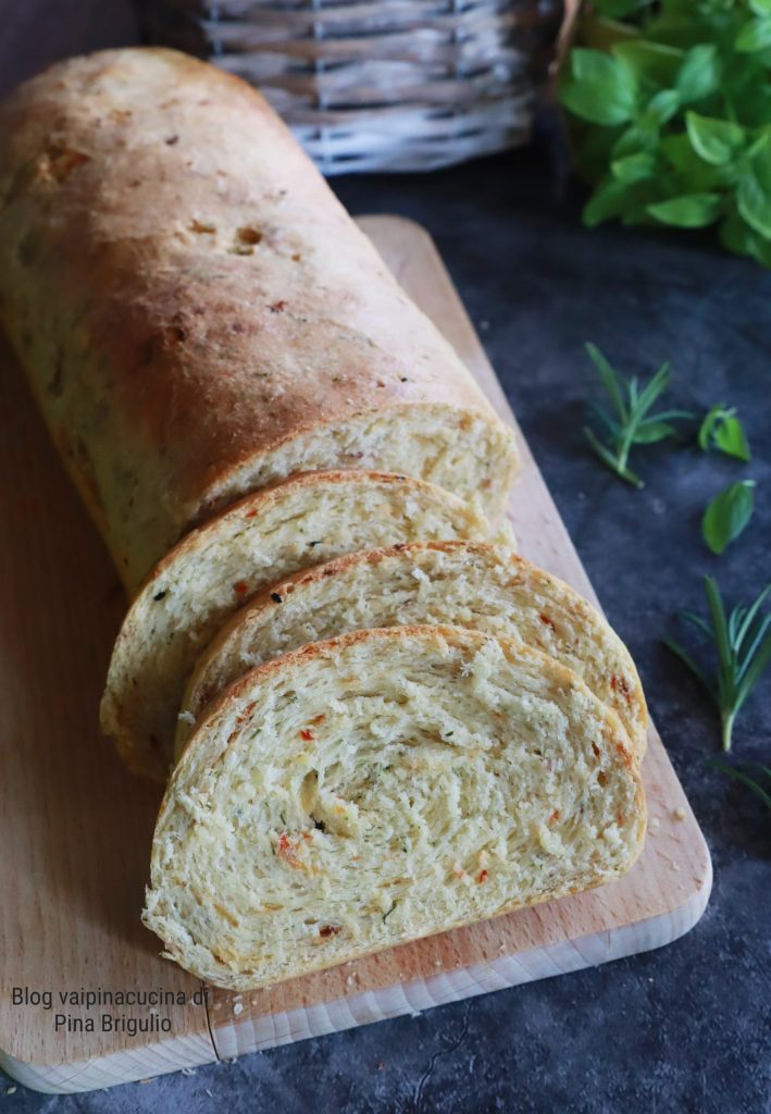 Pain de mie aux herbes de montagne très parfumées, un cadeau que ma fille m’a rapporté d’un voyage en Allemagne. Herbes très parfumées grâce aussi aux bleuets, au poivre rose, à la ciboulette et au zeste de citron, mais ce ne sont pas les seuls ingrédients magiques : il y a aussi des granulés de tomate, du cumin noir, des graines de sésame et des feuilles de haricots. Bien sûr, j’ai dû demander de l’aide à Google Traduction, malheureusement je ne parle pas allemand, et c’est pour cela que j’ai découvert quels étaient les ingrédients du topping aux herbes. Vous pouvez néanmoins le préparer vous-mêmes et il n’est pas nécessaire de le faire identique et parfait comme celui acheté.