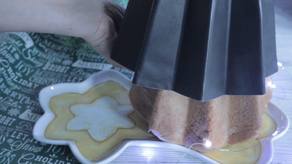 Je vérifie si le temps de cuisson est suffisant et je sors du four mon pandoro gastronomique de Noël.