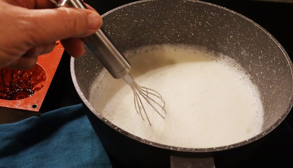 Dès l’ébullition, je baisse le feu et je fais cuire la panna cotta pendant 15 minutes.