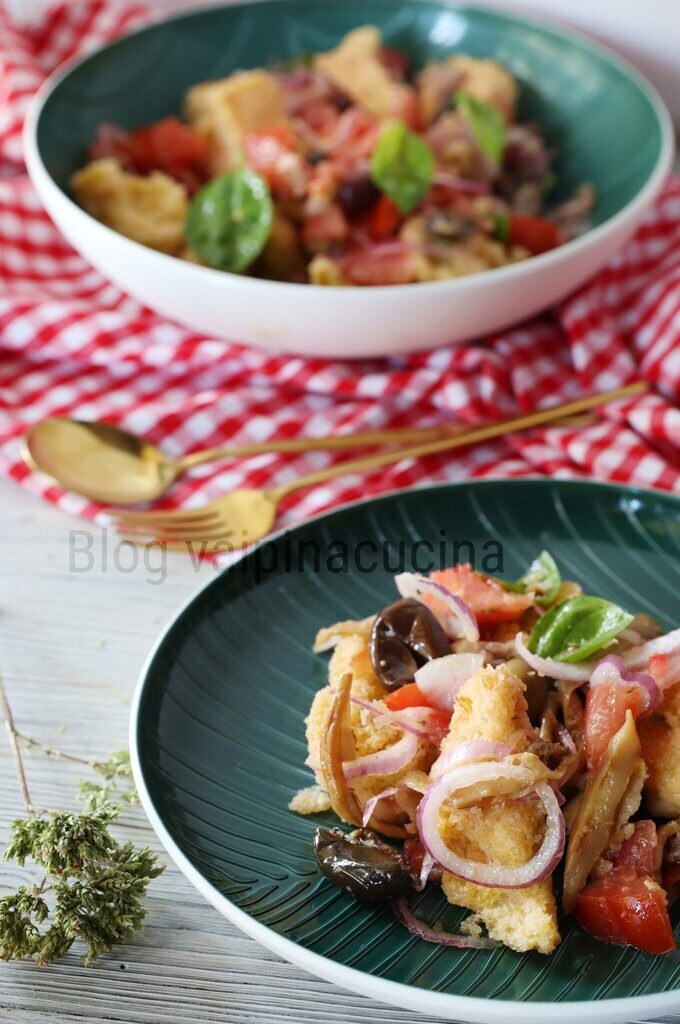 • Je fais reposer la panzanella avec pain dur au frigo, délicieuse à consommer non seulement pendant les mois chauds, mais je vous assure qu’elle est également plaisante en novembre.