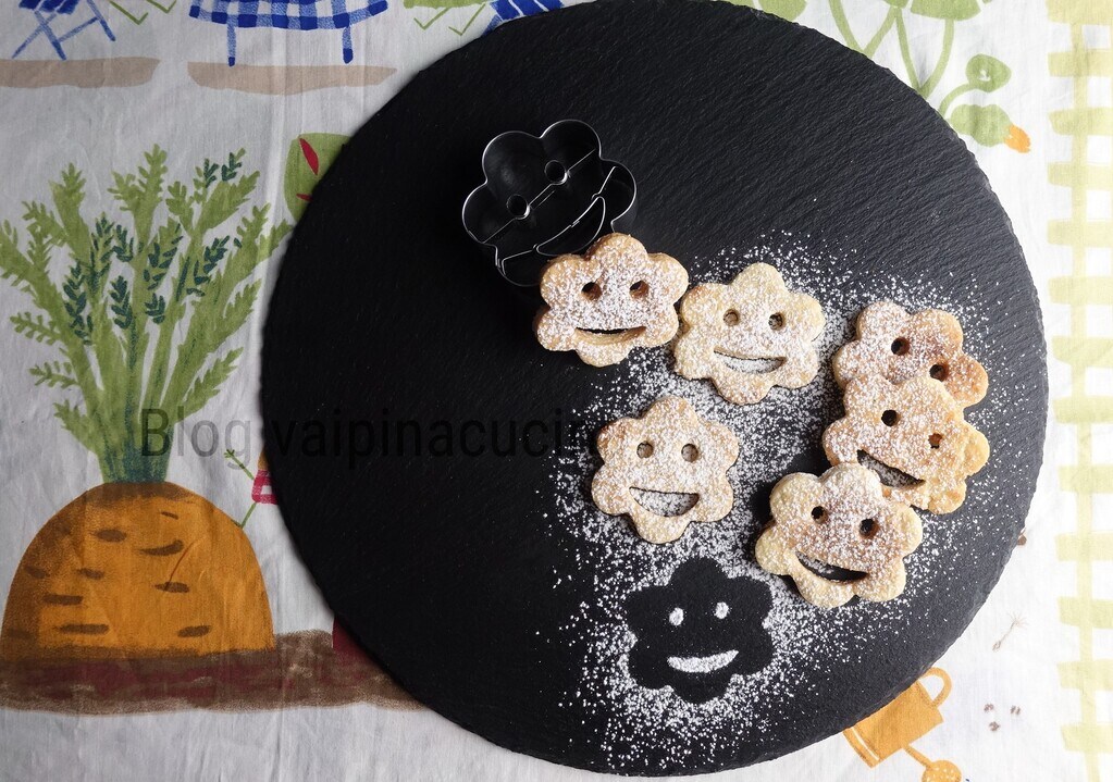 J’ai préparé des petits biscuits avec un emporte-pièce sourire, 15 minutes à 180°C suffisent pour la cuisson.