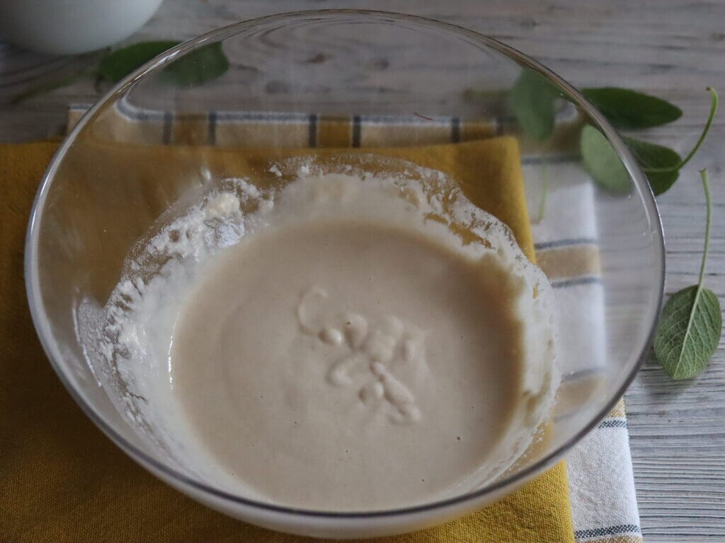 Mélangez énergiquement pour éviter les grumeaux dans la farine.