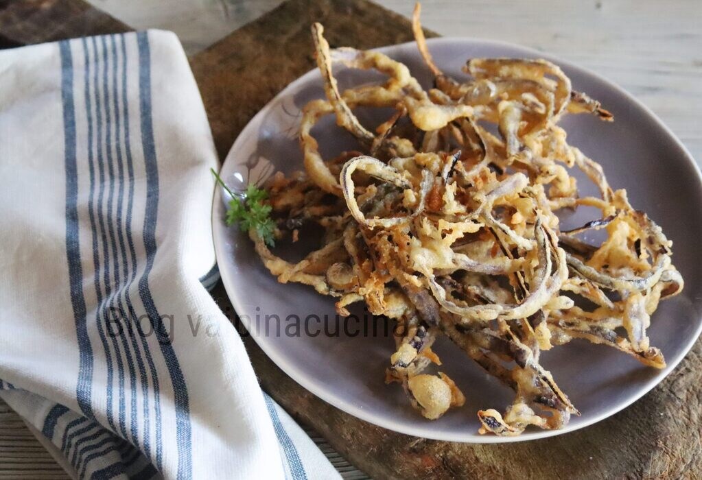 Peaux d’aubergine en pâte à frire, pas seulement la sauge, mais essayez avec les peaux d’aubergine en utilisant la même pâte, un délice. On peut vraiment réaliser beaucoup de recettes avec les aubergines, même en utilisant seulement la peau. Il n’y a pas beaucoup de légumes violets dans la nature, la couleur est due à une substance particulière qu’ils contiennent, les anthocyanines, en plus de la couleur et de l’amertume capables de stimuler l’appareil digestif en favorisant la digestion, elles sont utiles selon les médecins, je suis une simple blogueuse culinaire, contre la fragilité capillaire et elles ont des pouvoirs anti-inflammatoires. Les anthocyanines des aubergines possèdent un colorant naturel pour lequel elles sont utilisées comme additifs alimentaires, on peut les trouver sous le nom de colorant rouge anthocyanine (E163), dans les confitures ou boissons en général.
