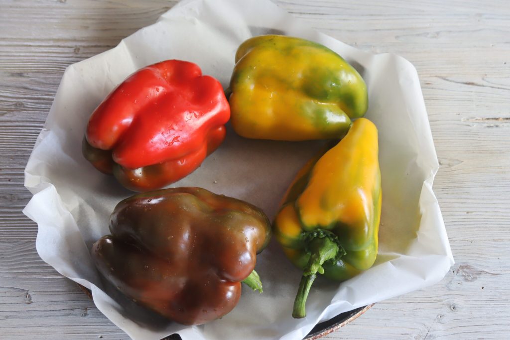 • Une fois prêts, je les enferme dans un sac en papier puis dans un récipient hermétique. Cela me permettra de les peler sans aucune difficulté. J’utiliserai 2 poivrons pour cette préparation comme accompagnement pour 2 personnes.