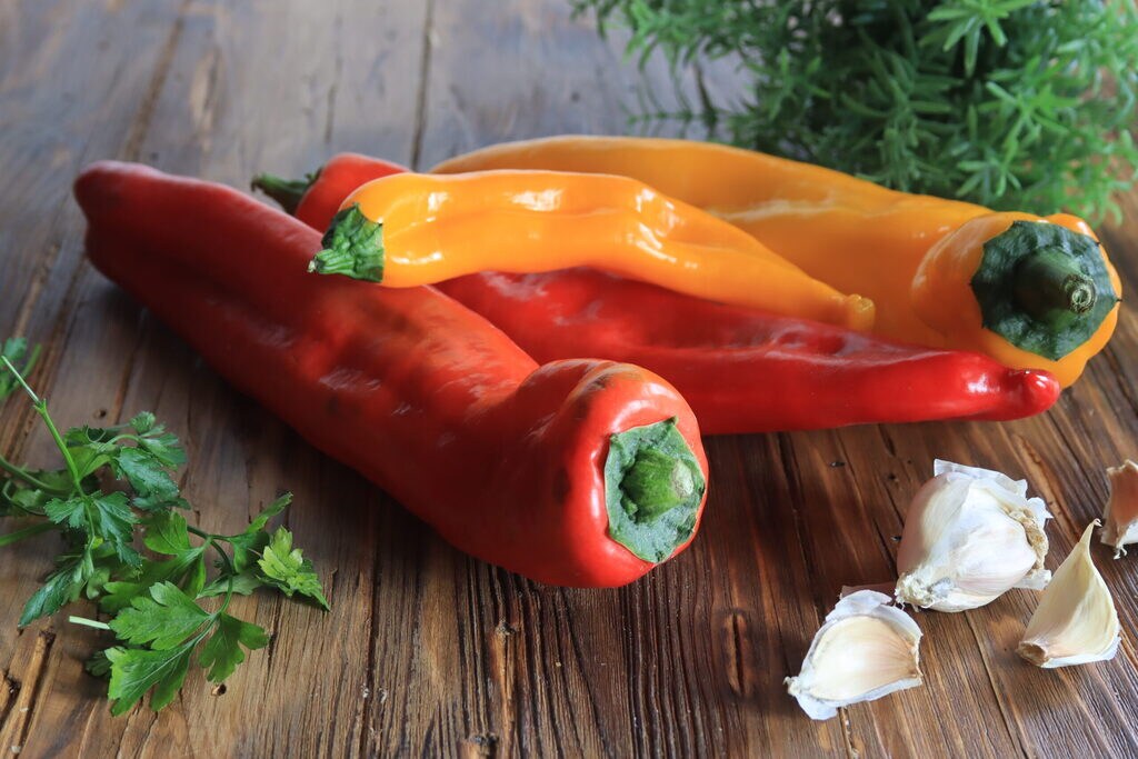 La saison des poivrons est très longue et va d’avril à fin octobre, donc ce n’est pas la période même si mes poivrons viennent de Sicile et ont été cultivés en serre. Bien sûr, aussi bons soient-ils, ils ne seront jamais aussi savoureux que ceux mûris en été sous le soleil. Le poivron est absolument le légume avec le plus de vitamine C, avec une quantité décente de vitamine A et beaucoup de sels minéraux, c’est l’une des raisons de le choisir en cuisine en plus du goût évidemment.