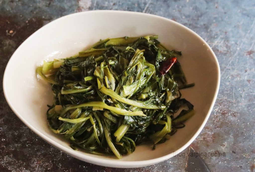 Puntarelle à l’ail, huile et piment à cuire, pour un accompagnement très facile. Vous savez tous ce que sont les puntarelle, comment les nettoyer et les cuisiner. Mais si quelqu’un a manqué comment et quand cuisiner les puntarelle, je vous mets le lien en bleu ici pour le consulter. Probablement, ce seront les dernières de la saison, et donc, profitons-en et, en plus de préparer les pointes crues en salade, préparons les feuilles cuites sans les faire bouillir d’abord : elles sont tellement tendres que ce n’est pas nécessaire. Elles sont ma passion, comme elles l’étaient aussi pour mes parents. Mon père se souvient avoir ramené chez lui, en Sicile, des graines pour pouvoir les refaire, tant il les aimait aussi, un plat romain qu’il ne trouvait que là.