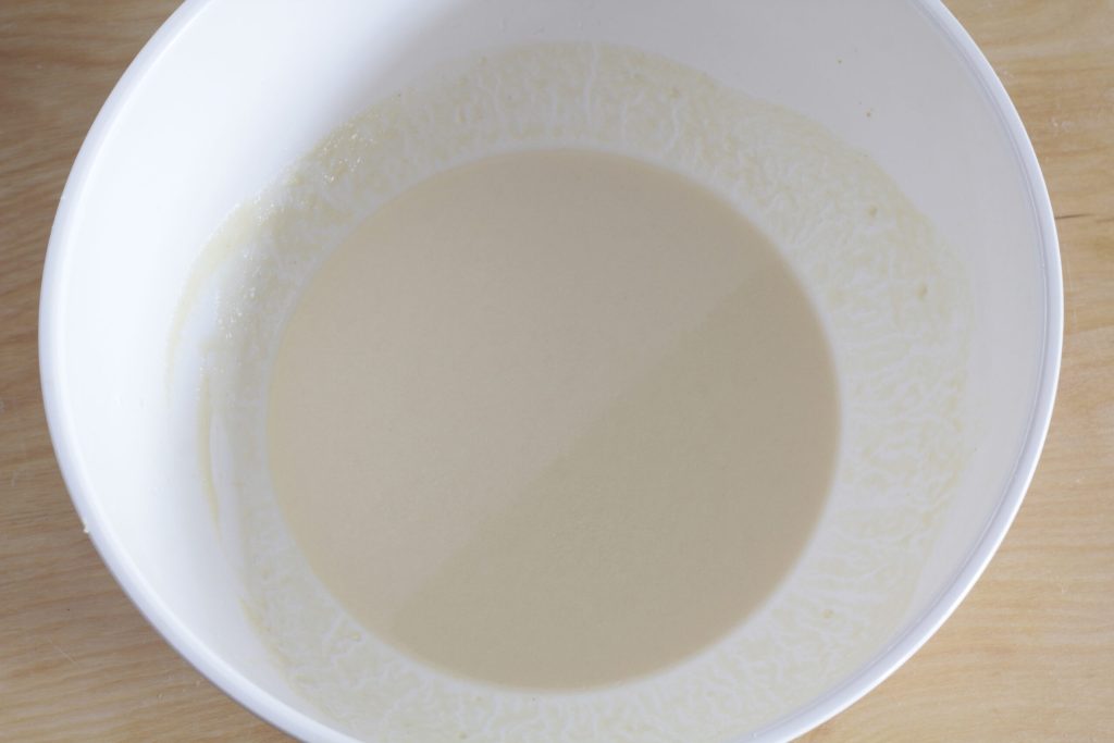 Dans le robot pâtissier, je mets la farine tandis que le levain je le fais dissoudre dans 100 g d’eau du total. Je commence à ajouter l’eau, l’huile et comme toujours le sel en dernier.