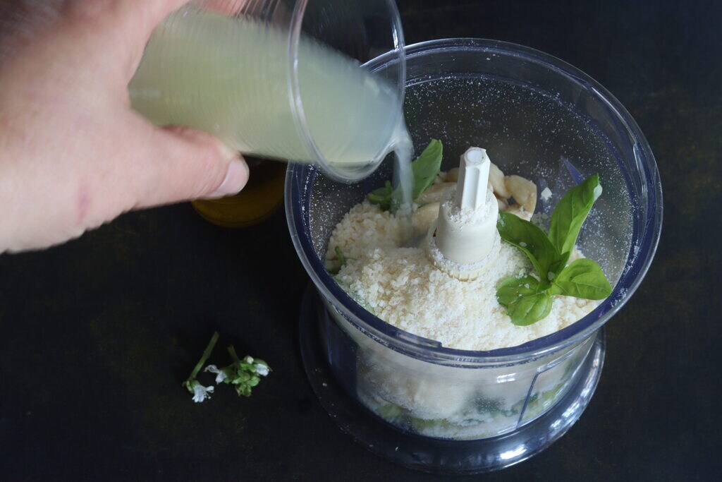 Bien sûr, vous pouvez aussi utiliser des noix pour le pesto de citron à condition qu’elles soient fraîches, car le goût fort des noix trop mûres changerait complètement la saveur.