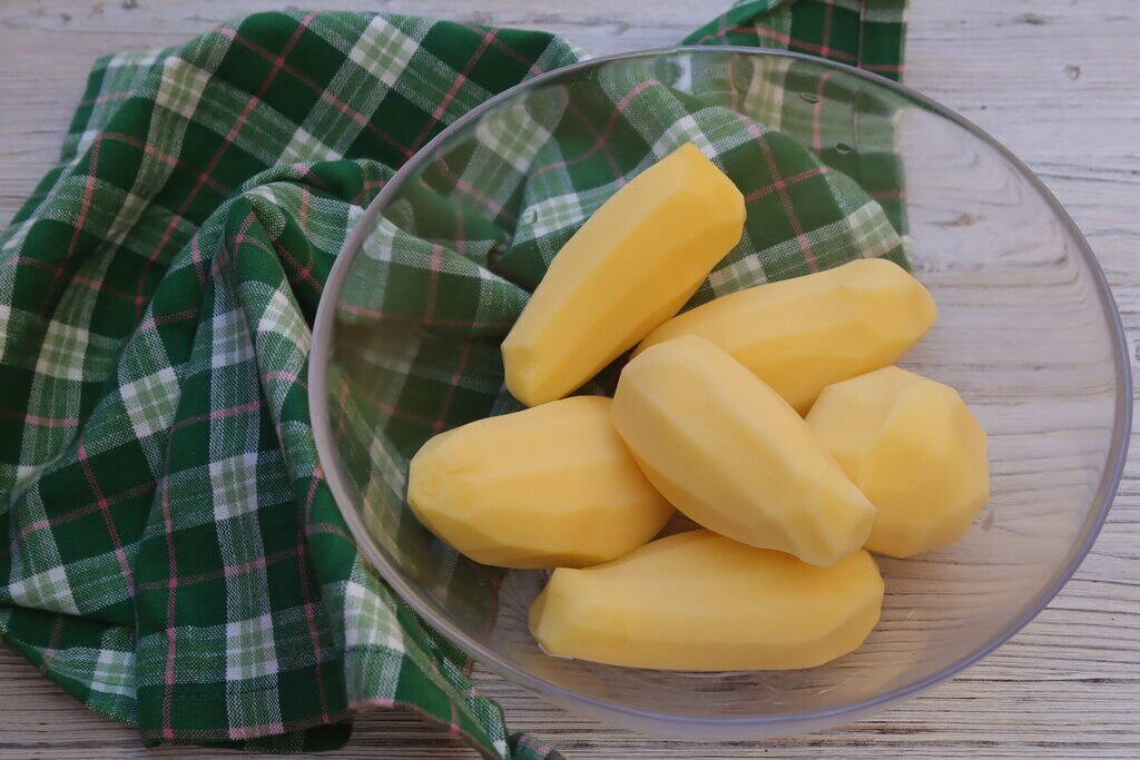 Lavez et épluchez les pommes de terre dans de l’eau bouillante salée et faites-les cuire pendant trente minutes.