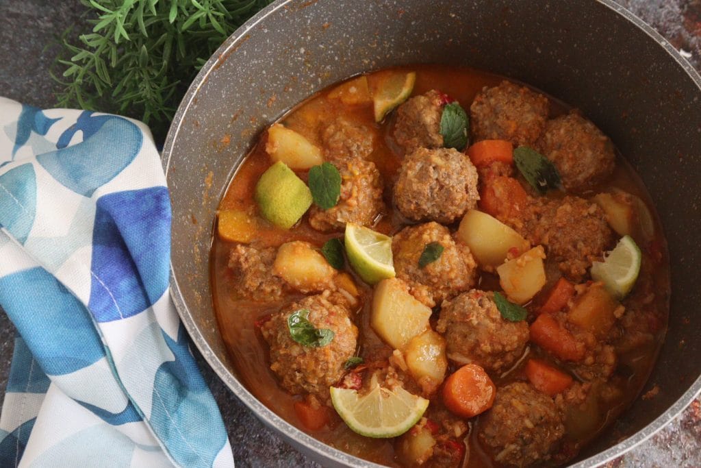 Soupe de boulettes de viande à la mexicaine, donc épicée, très épicée. Ce plat se déguste principalement en automne et en hiver, mais ne déplaît pas du tout à d’autres périodes. Cette soupe d’apparence compliquée et complexe est en réalité très simple, préparée avec des boulettes de viande et du riz cuits dans un bouillon avec des pommes de terre et des carottes. Une soupe nécessite du bouillon et de la tomate, ainsi que de nombreuses herbes et assaisonnements comme l’ail et l’oignon.