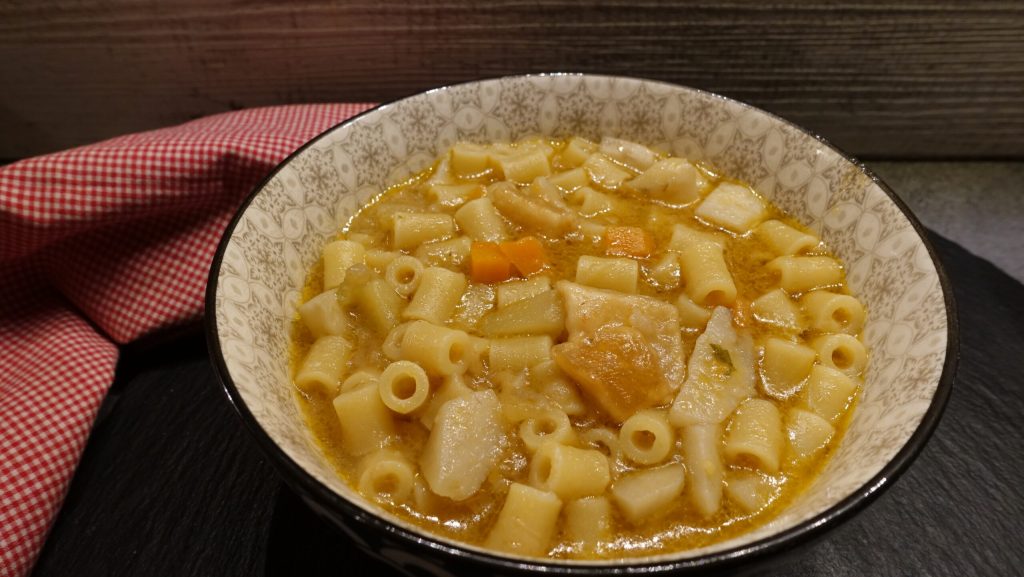 Soupe de pommes de terre et topinambours, vraiment spéciale avec ou sans pâtes devient une extraordinaire soupe. J’ai voulu transformer ma soupe en un super plat principal réconfortant, naturellement avec des petites pâtes comme les tubetti que j’adore. J’ai donc décidé d’ajouter le topinambour, un tubercule spécial. Cette soupe a ensuite un secret, petit mais efficace qui la rend crémeuse et que vous découvrirez en suivant la recette. Ce tubercule est également appelé artichaut de Jérusalem, en effet le goût nous rappelle celui de l’artichaut, mais il est aussi appelé navet allemand ou tournesol du Canada. Nous parlons toujours de la même plante bien sûr. Utile dans le régime alimentaire dans certaines formes de diabète, en plus bien sûr de satisfaire notre palais, il est facilement digestible et diététique. Il ne contient pas de cholestérol et cela me fait penser qu’il est accessible à tous.