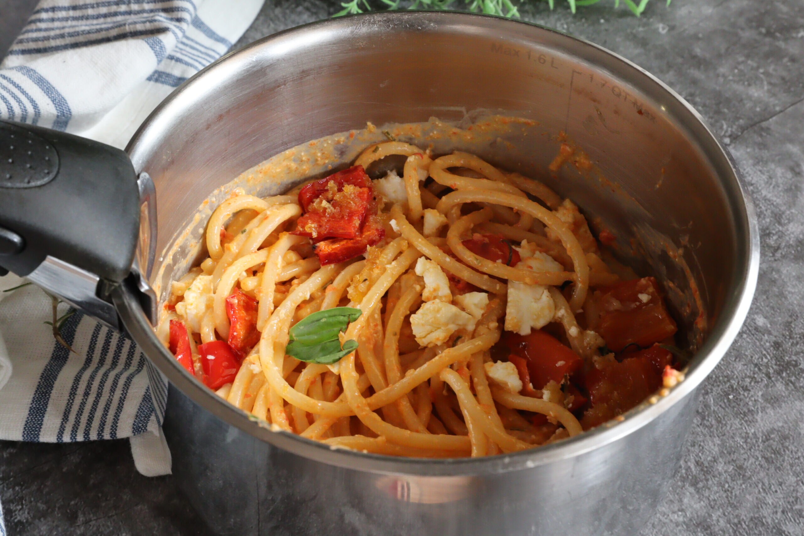 Étapes pour préparer les spaghetti aux poivrons et feta