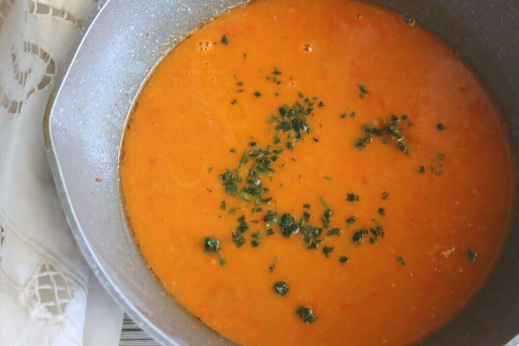 • Remettez la crème de tomate dans la poêle et saupoudrez de persil haché.