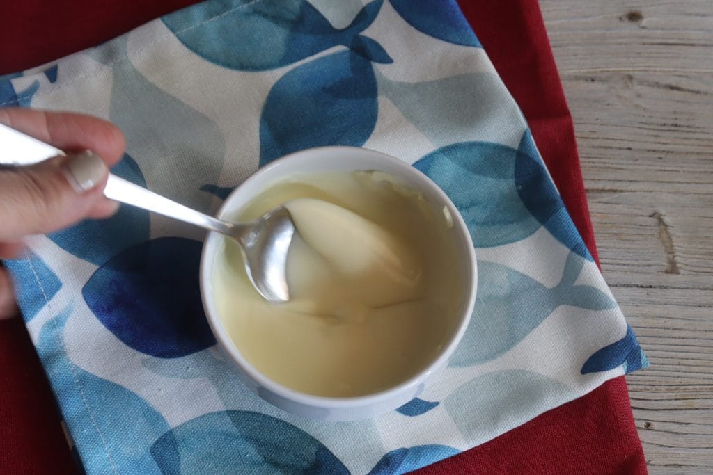 • Au micro-ondes pendant 30 secondes, j’ai fait fondre le chocolat blanc.