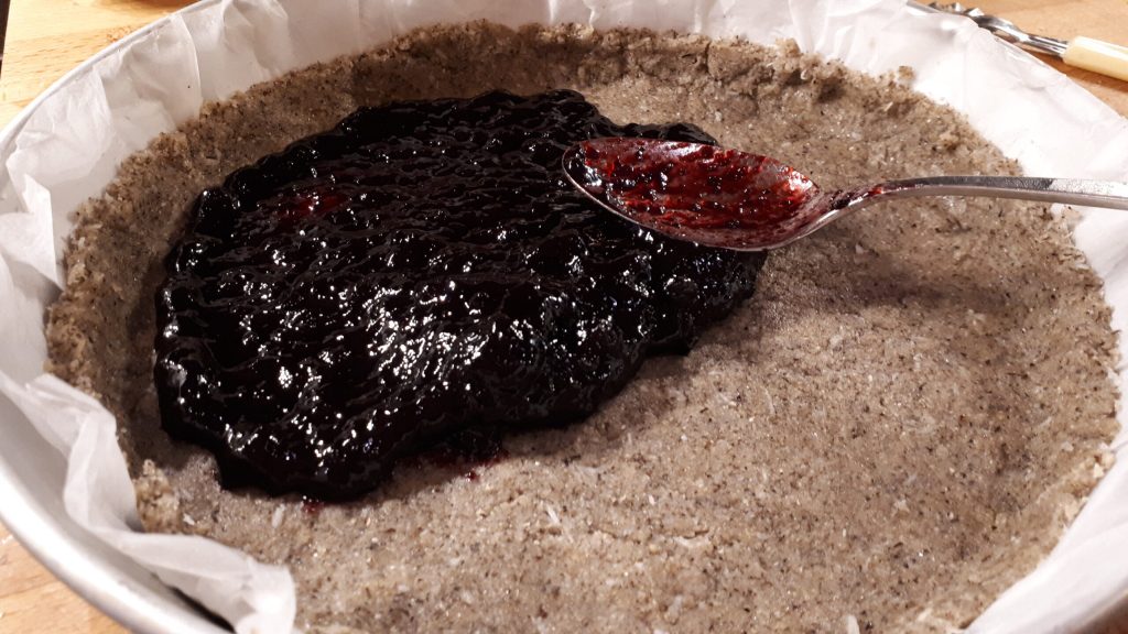 Répartissez la confiture sur la base de la tarte. Mettez au four pendant 35 minutes à 180°