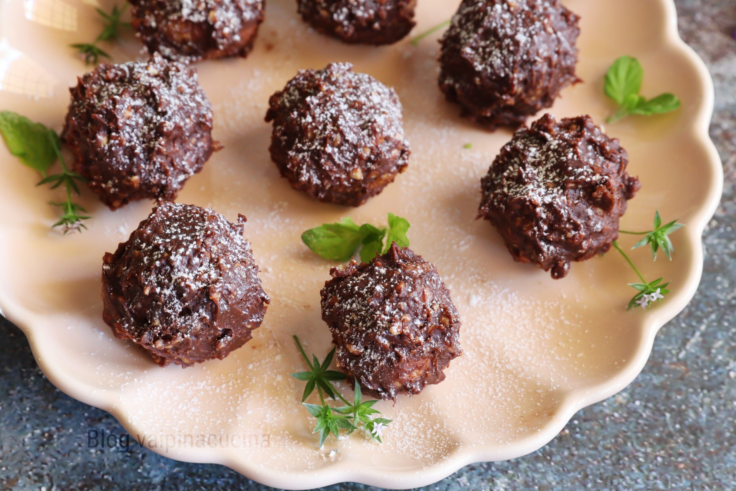 Truffes au chocolat, biscuits et yaourt sans œufs et sans beurre, recouverts d’une délicieuse ganache au chocolat. Ils sont vraiment rapides à préparer et avec seulement trois ingrédients, vous pouvez les faire en quelques minutes et sans cuisson, bien sûr, il n’y a que la préparation de la ganache au chocolat qui nécessite une cuisson. La crème effleure l’ébullition et puis on ajoute le chocolat noir d’au moins 70 %, de cette façon, on prépare le glaçage des truffes, un délice pour le palais.