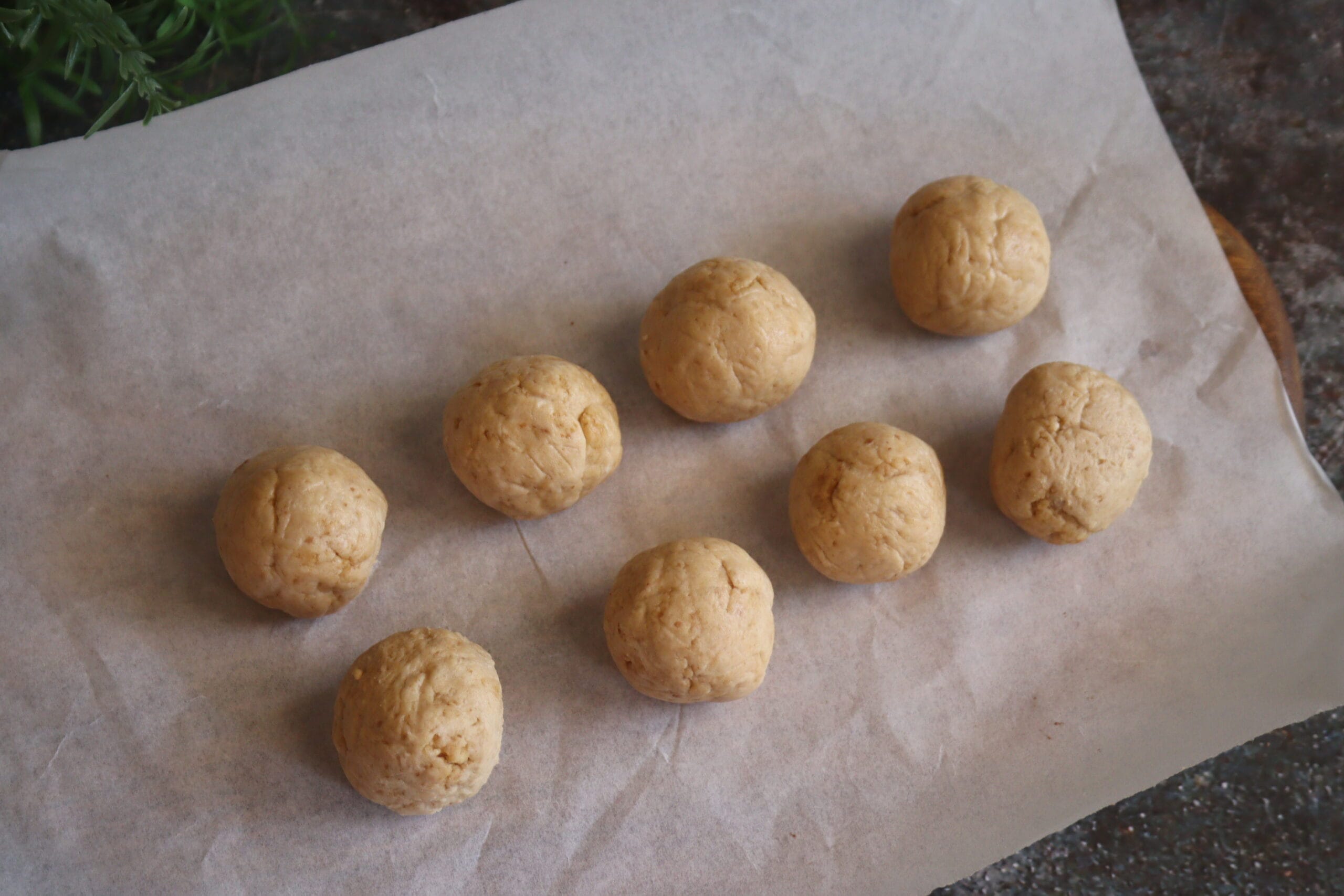 Je forme des boules, huit en tout de 30 grammes chacune.