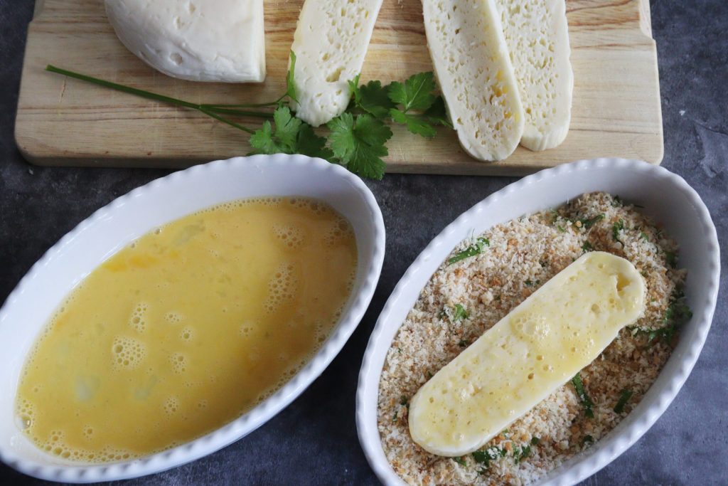 J’ai coupé la tuma en tranches et je l’ai d’abord passée dans l’œuf puis