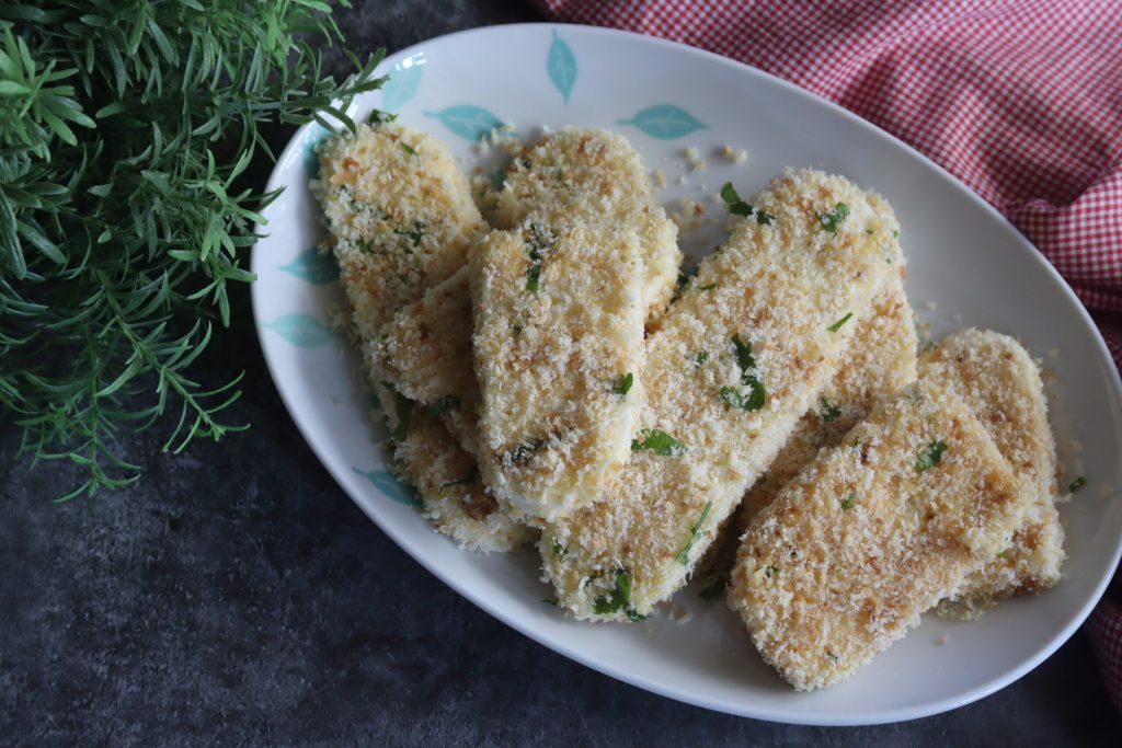J’ai mis l’huile dans la poêle et j’ai porté la température à 170°C. Une par une, j’ai frit toutes les tranches de tuma panées.