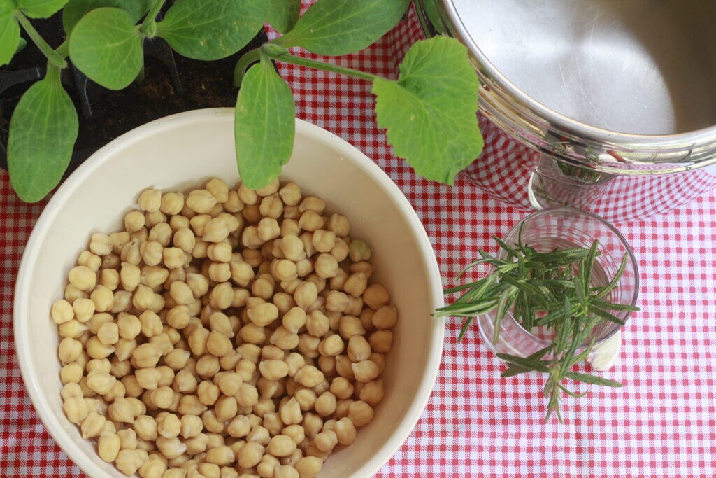 En utilisant des pois chiches secs, n’oubliez pas la veille de la préparation de la recette de les mettre dans l’eau toute la nuit pour les réhydrater.