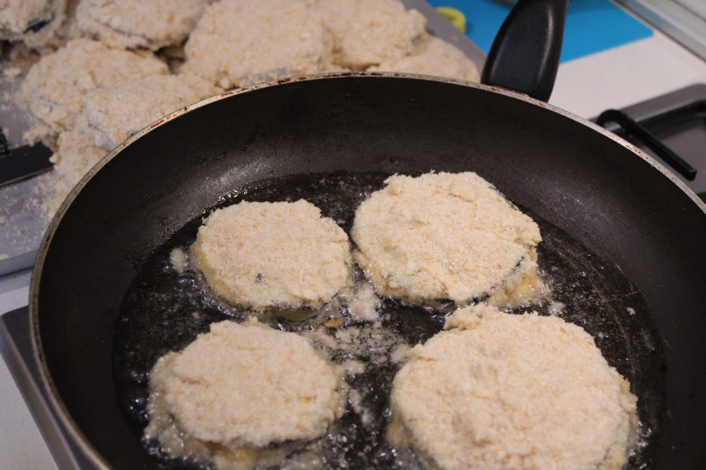 Et avec délicatesse, faites frire les aubergines. Une fois prêtes et bien frites, égouttez l’excès de graisse sur du papier absorbant ou du papier de cuisine.
