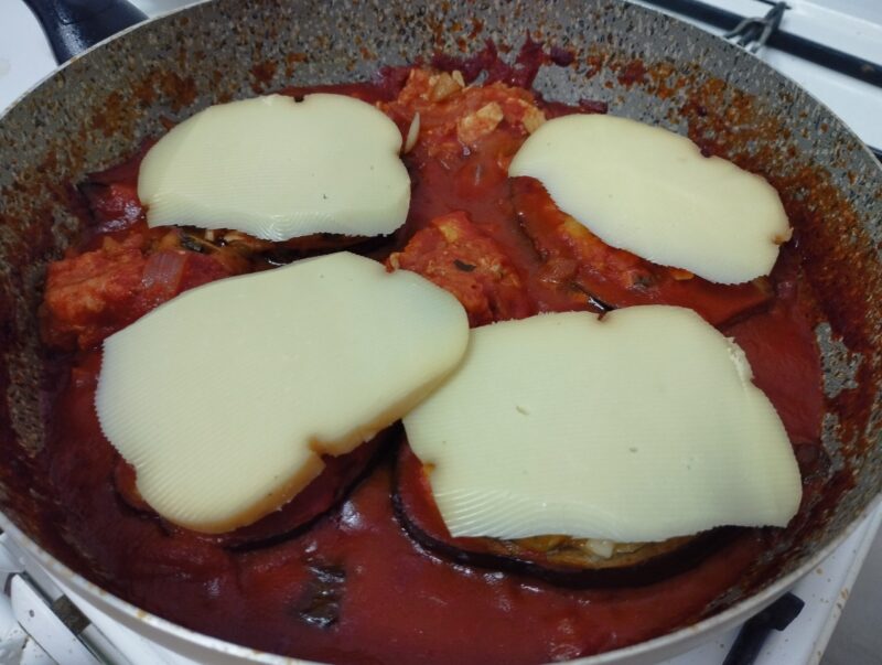 En fin de cuisson, mettez une tranche de provola sur chaque aubergine, faites fondre et servez