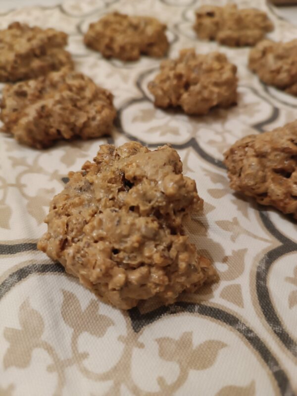 Aidez-vous de deux cuillères pour former des petits tas, j’en mets environ une demi-cuillère, espacés de deux/trois cm et enfournez dans un four déjà chaud à une température de 160 degrés. Attendez environ 20 minutes, en surveillant la cuisson, car chaque four a ses propres caractéristiques