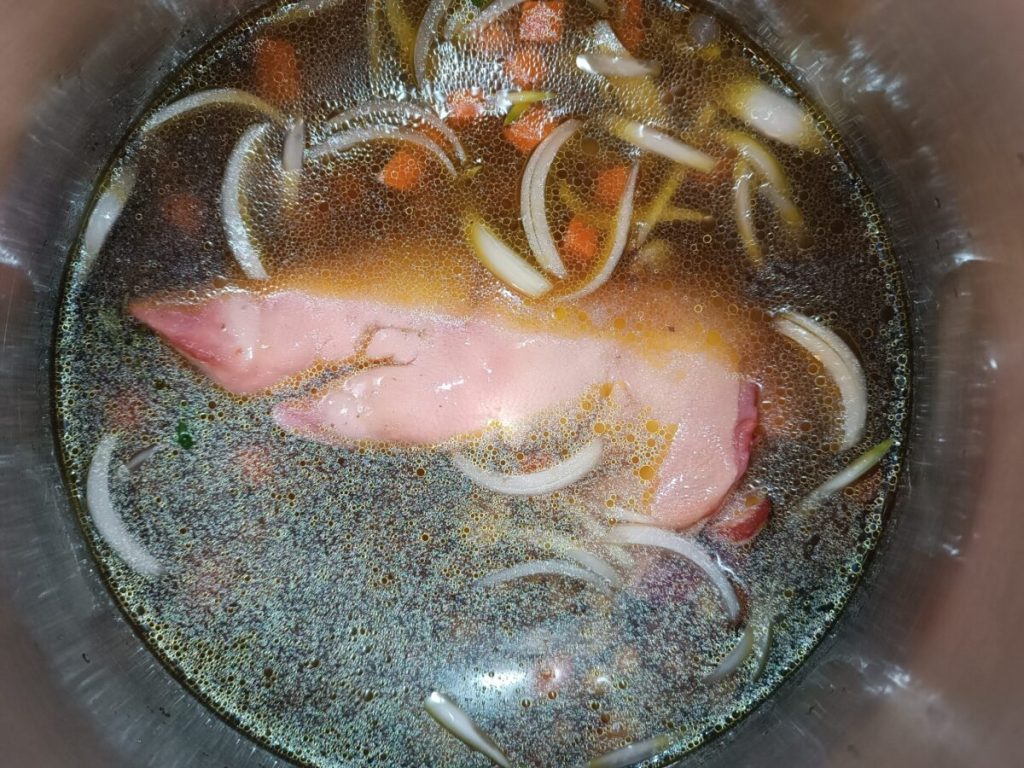 - 2 pieds de porc (Déjà nettoyés et flambés, coupés en deux)