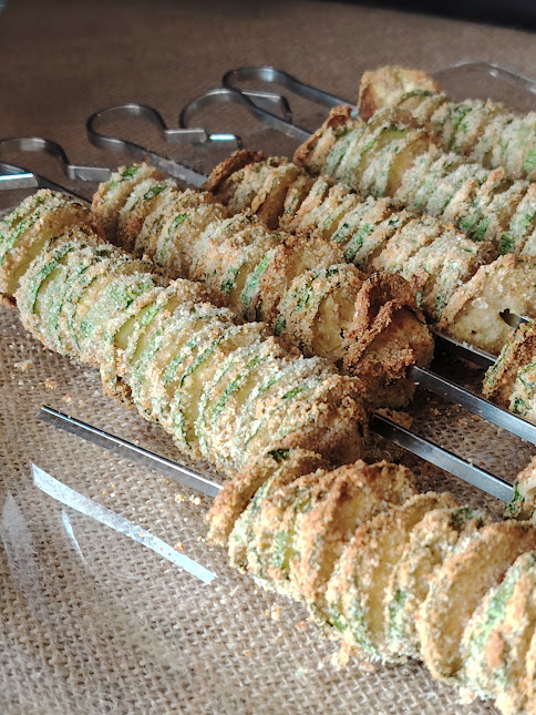 Tout a commencé un jour où je me trouvais en cuisine en train de préparer des tomates à mettre sur le grill. Pendant que je coupais les courgettes pour une autre recette, j’ai pensé à ne rien gaspiller et à les utiliser pour créer quelque chose de nouveau et original. C’est ainsi qu’est née l’idée des brochettes de courgettes, une façon créative de consommer la récolte abondante et d’apporter une touche de présentation moderne et de variété à ma table.